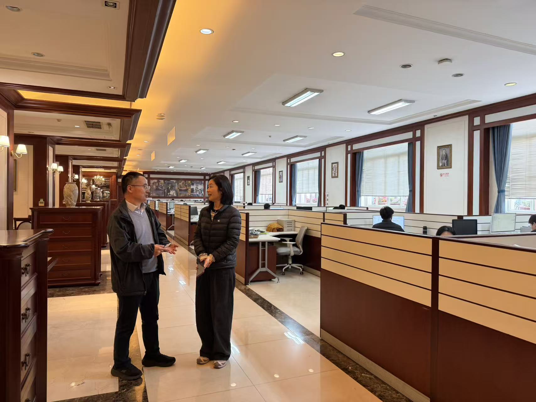 会后,郭俊一行在企业管理团队陪同下,实地考察了乔治白智能工厂、科技创新中心、设计工作室及物流调度系统,亲身感受了公司从面料研发、数字量体到智能生产的全链条创新实力与精益管理水平。