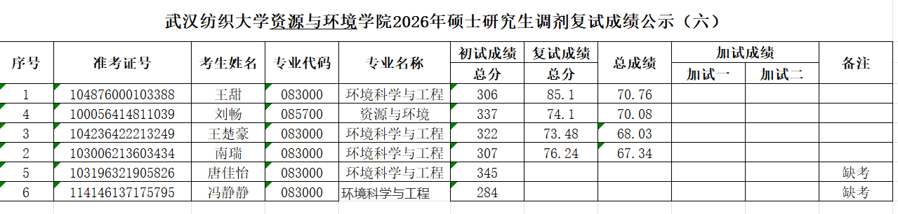 根据《武汉纺织大学2026年招收攻读硕士学位研究生复试录取方案》等文件精神,现将十大色碟网站 2026年硕士研究生第七轮调剂复试成绩公示。公示时间:2026年4月18日-20日