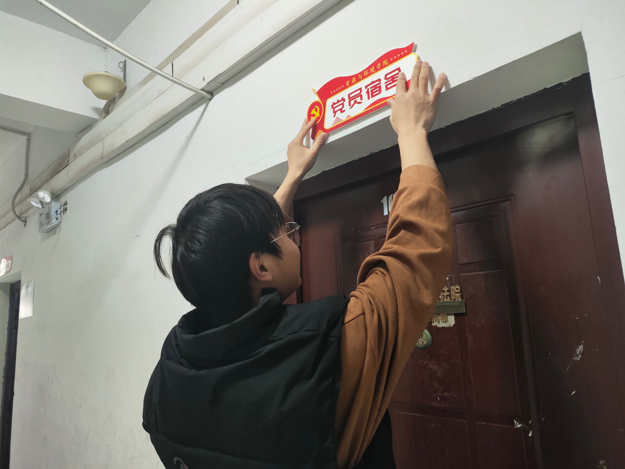 培训结束后,各党员宿舍将鲜红醒目的“党员寝室”标牌张贴在各自寝室门楣的显眼位置,像一面小小的“先锋旗帜”,时刻提醒着寝室成员牢记党员身份、扛起示范责任。