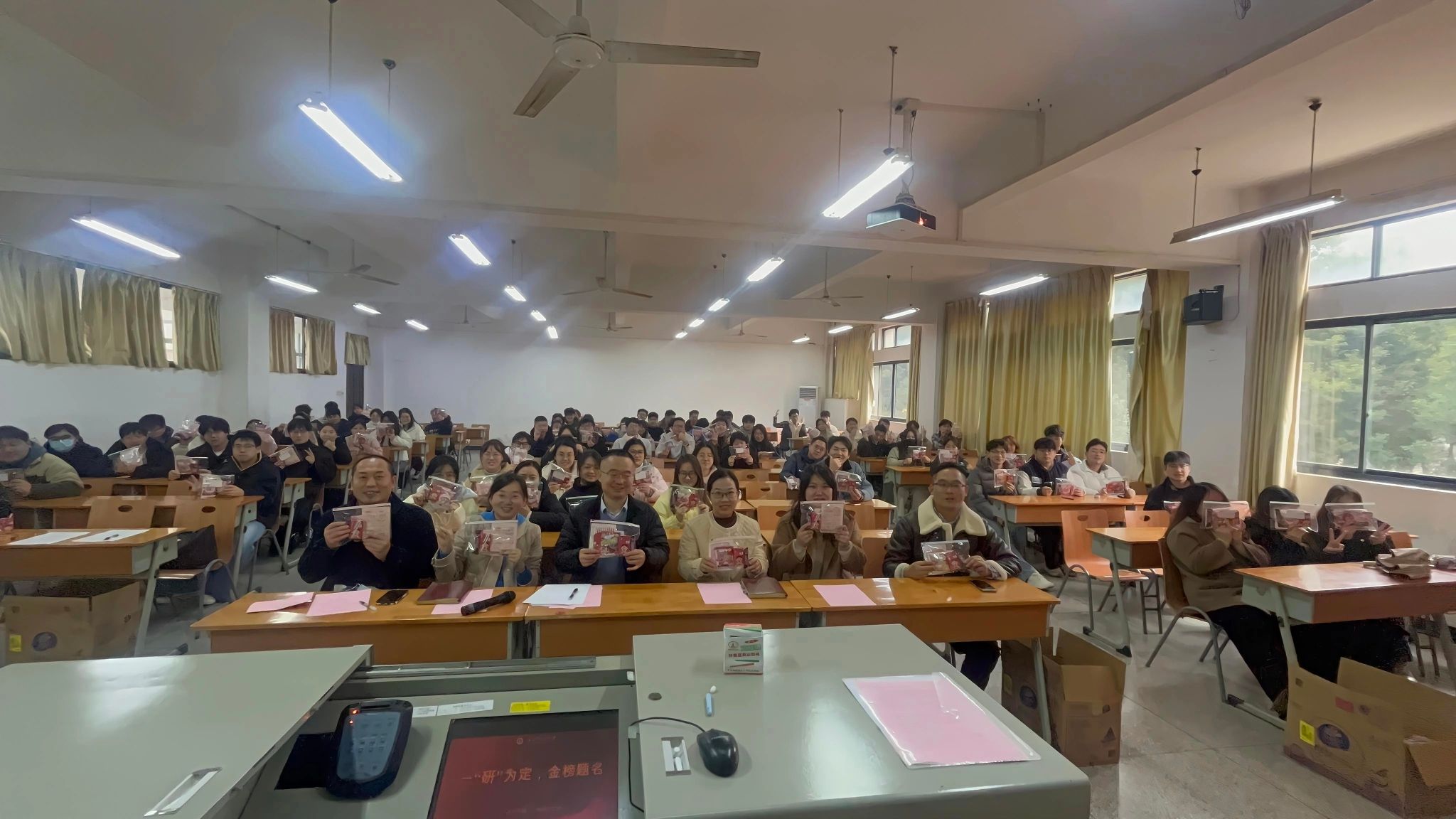 活动最后,与会院领导共同为考研学子发放慰问品,表达色碟