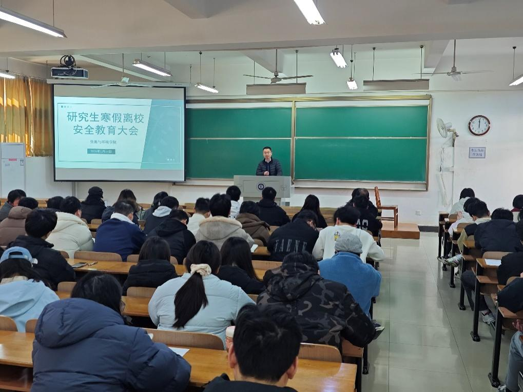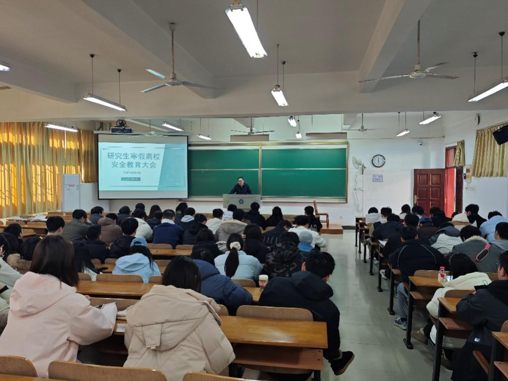面向全体研究生召开寒假离校安全教育主题大会。院党委书记郭俊、院长潘飞、院党委副书记姚瑶、研究生辅导员李文倩及全体研究生参加。大会围绕财产安全、人身安全、实验室安全及离校注意事项等多个方面展开系统教育,为学生平安度过寒假筑牢思想防线。