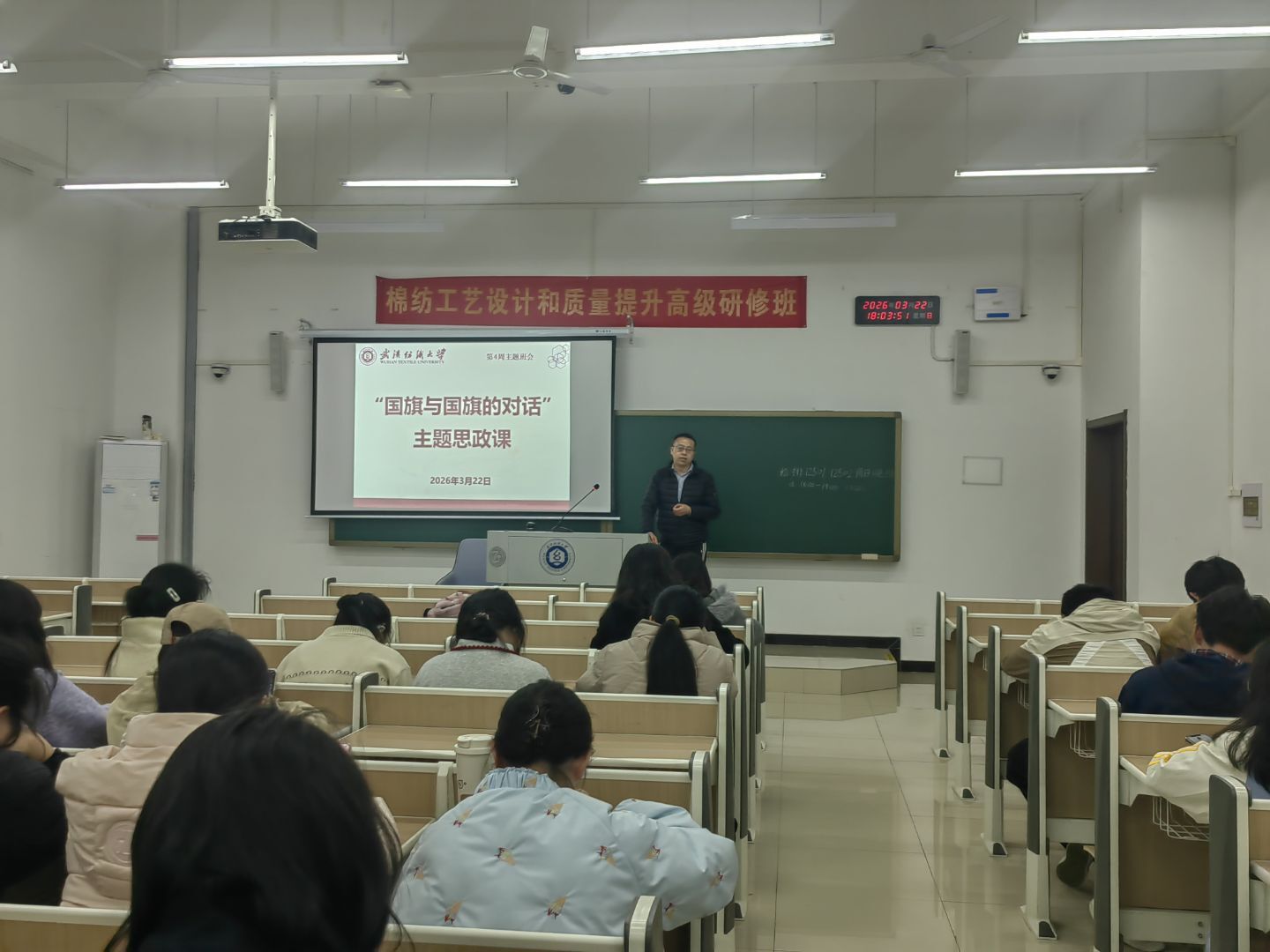 在崇礼楼组织全体研究生与本科生各年级开展了“国旗与国旗的对话”主题思政课暨“3·25 善爱我”阳光心理健康月主题班会。活动通过沉浸式思政教育与心理健康引导相结合,激励学生坚定理想信念、关注自身成长。