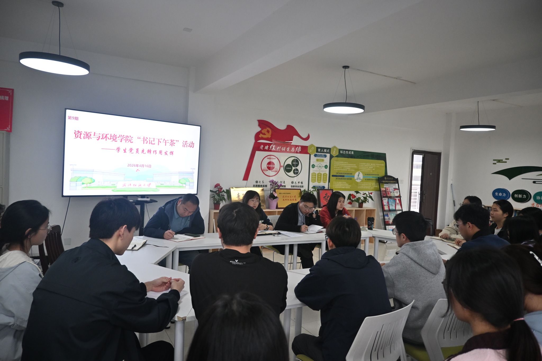 党委副书记姚瑶、团委书记毛成兴、学生党支部书记与各支部党员代表齐聚一堂,结合树立和践行正确的政绩观学习教育,面对面交流研讨,共商学生党支部建设与党员先锋作用发挥路径。